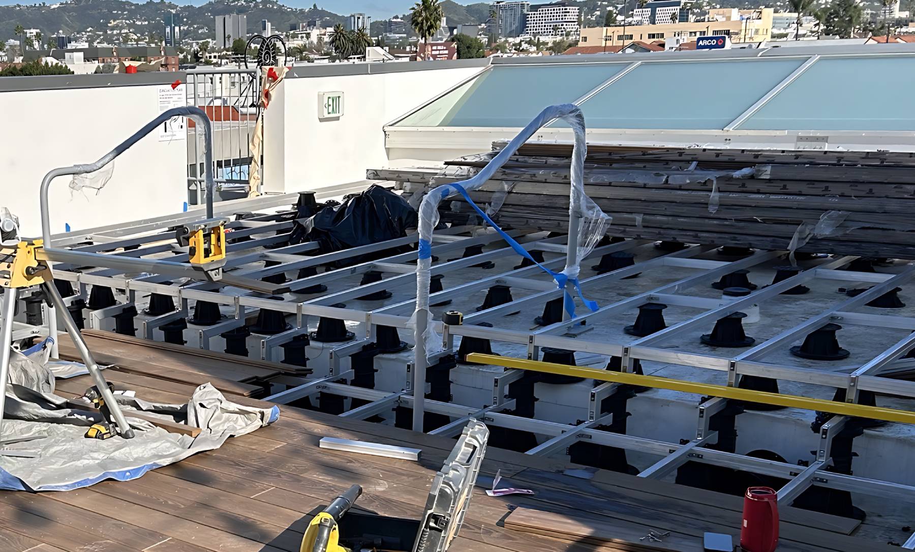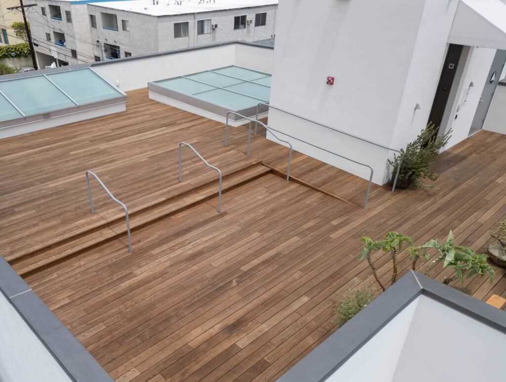 These joists provide a straight, strong, and noncombustible Class “A” deck framing solution, compatible with nearly any decking material, perfect for commercial and residential rooftop decks. You may remember our Thermo Ash Rooftop Deck project in Los Angeles, where Buzon pedestals supported beautiful thermo ash decking. The Universal Aluminum Joist is designed to work seamlessly with pedestal systems like Buzon’s, offering superior stability, heavy-load capacity, and long-lasting performance, whether you’re using wood, composite, or stone- and porcelain pavers.